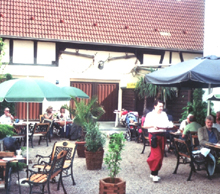 Bei regionalen Küche finden Sie Ruhe und Entspannung unter uralten schattigen Bäumen